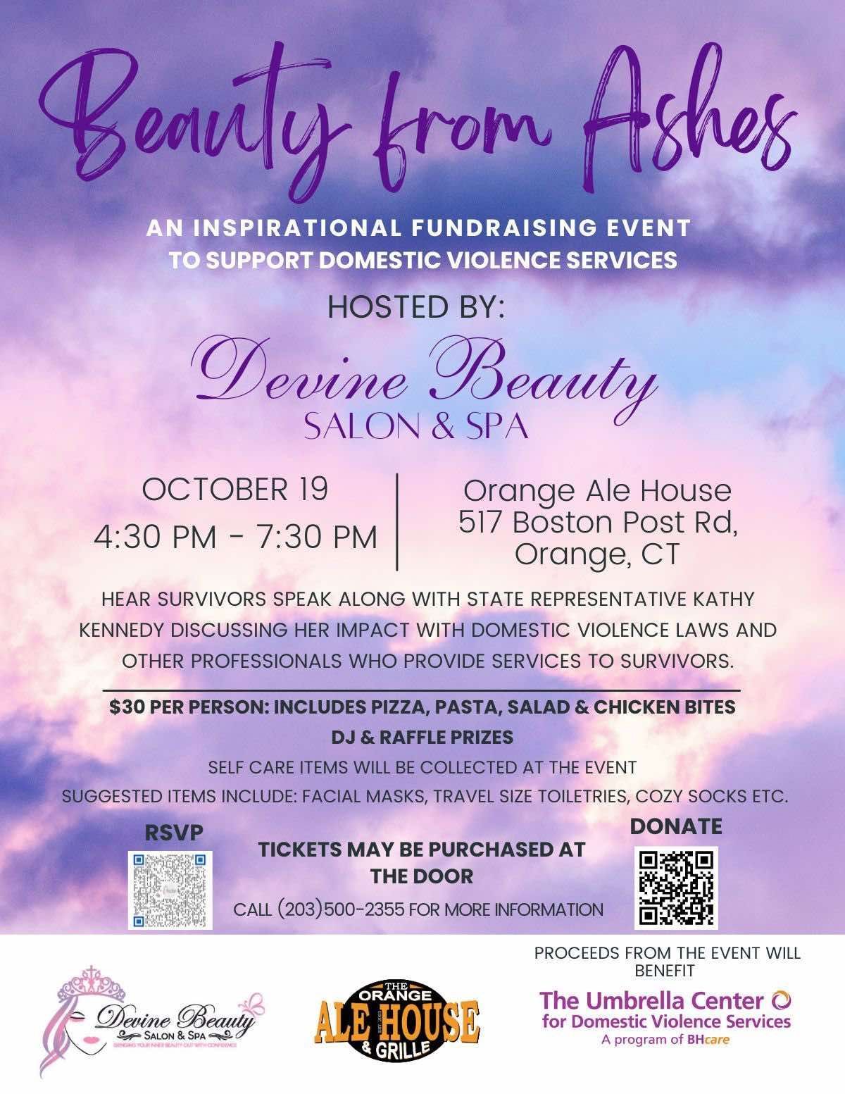 Devine Beauty Salon & Spa is honored to host our third annual Beauty from Ashes Fundraiser this year at :